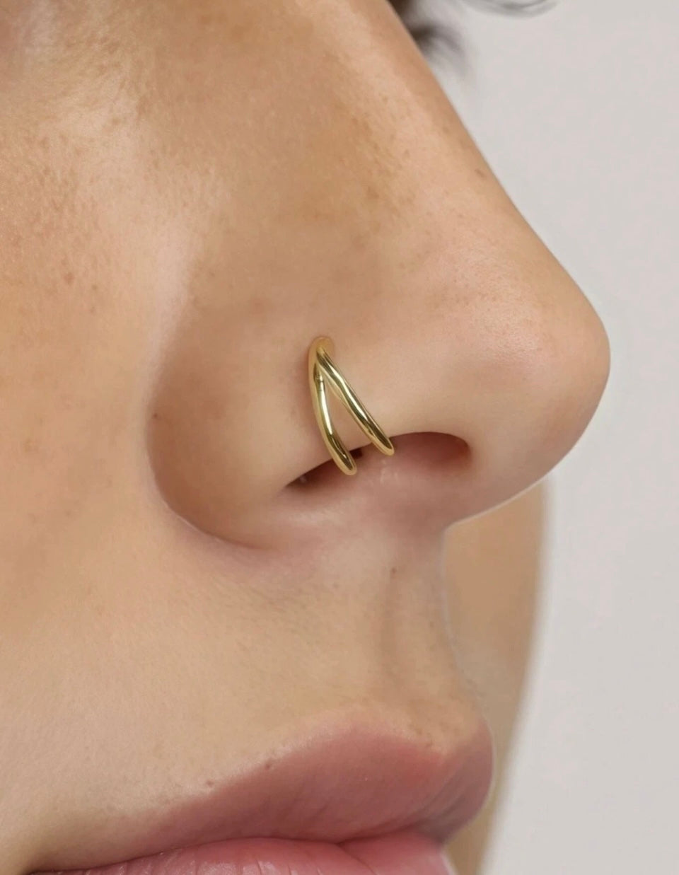 1x Gold Double Hoop Surgical Stainless Steel Septum segment Clicker