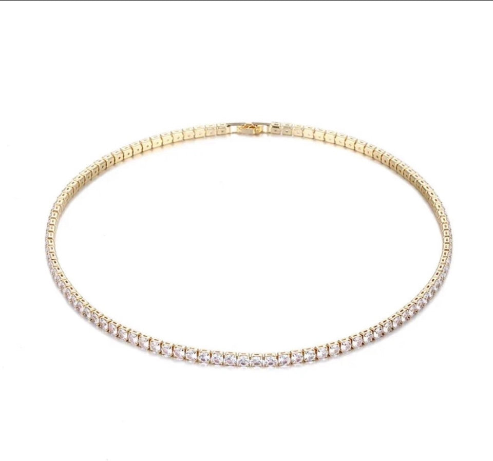 Tennis Choker Cubic Zircon Necklace For Men Gold