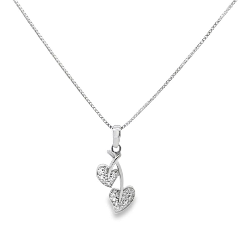 925 Solid Silver Necklace Cubic Love Leaf Drop Pendant RRP £55 BOXED