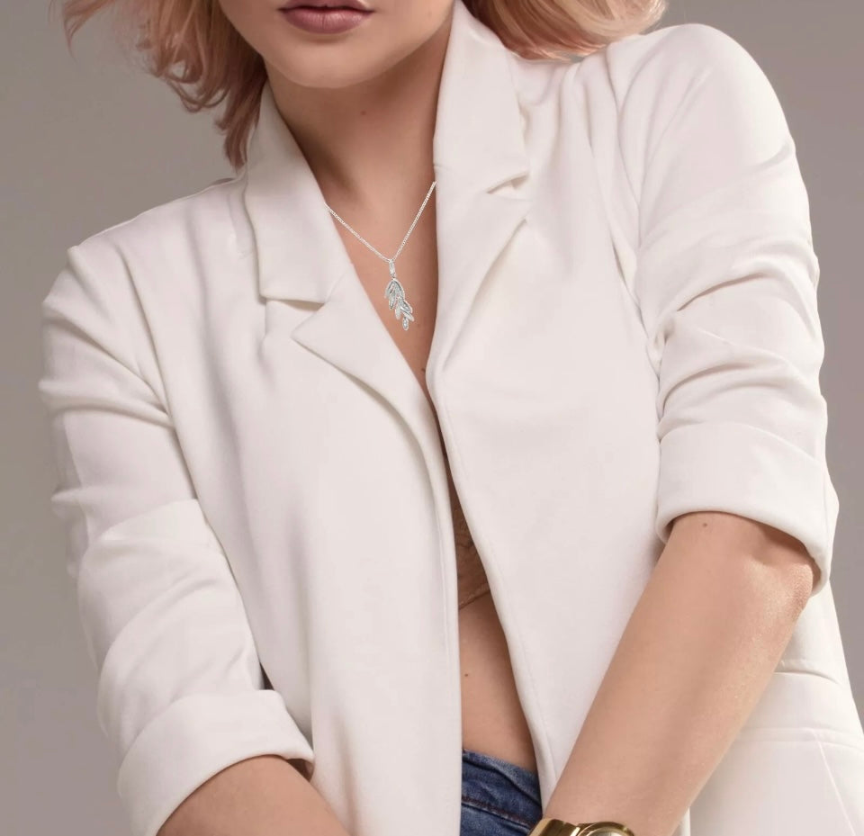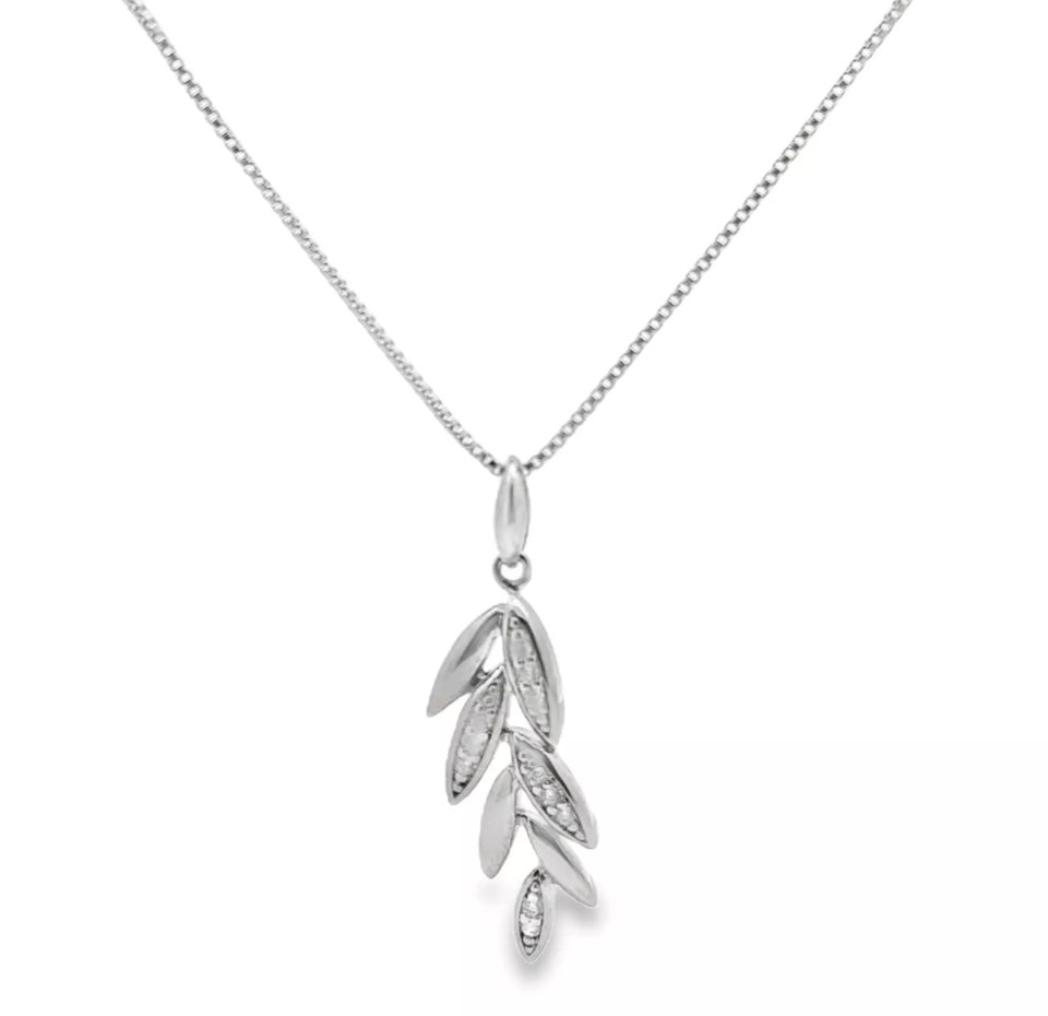 925 Solid Silver Necklace Cubic Love Leaf Drop Pendant RRP £55 BOXED