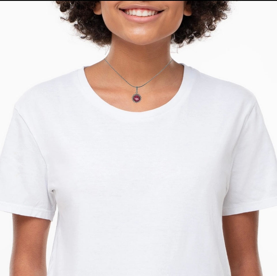 925 Solid Silver Pink Topaz Heart Necklace £59 BOXED