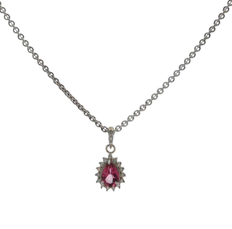 925 Solid Silver Pink Topaz Tear Drop Necklace £59 BOXED