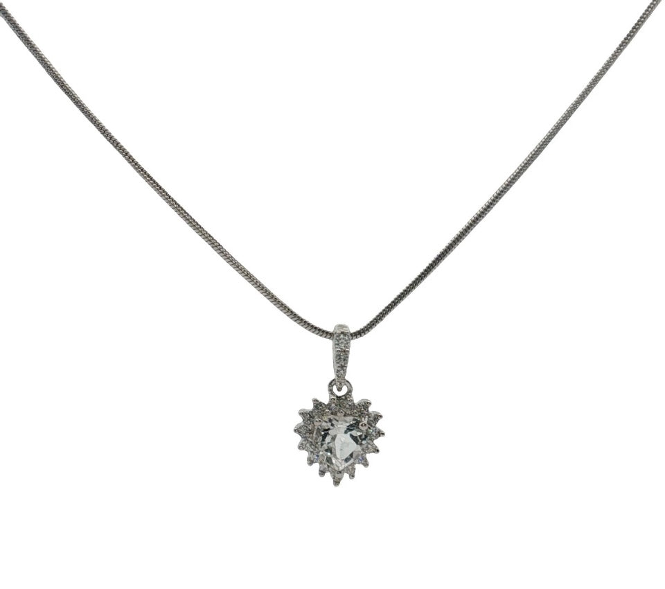925 Solid Silver White Topaz Heart Necklace £59 BOXED