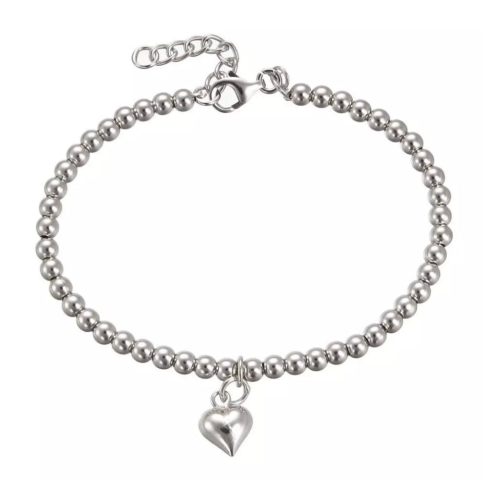 925 Solid Sterling Silver Love Heart Ball Bracelet RRP £65 Boxed