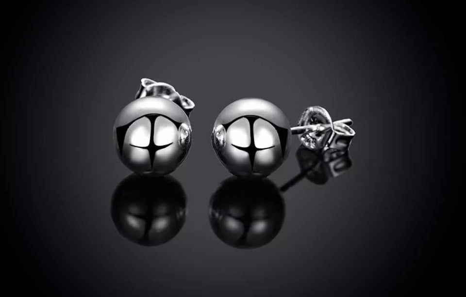 Silver Ball Pearl Earrings 8mm Round Stud Butterfly Back Gift Bag