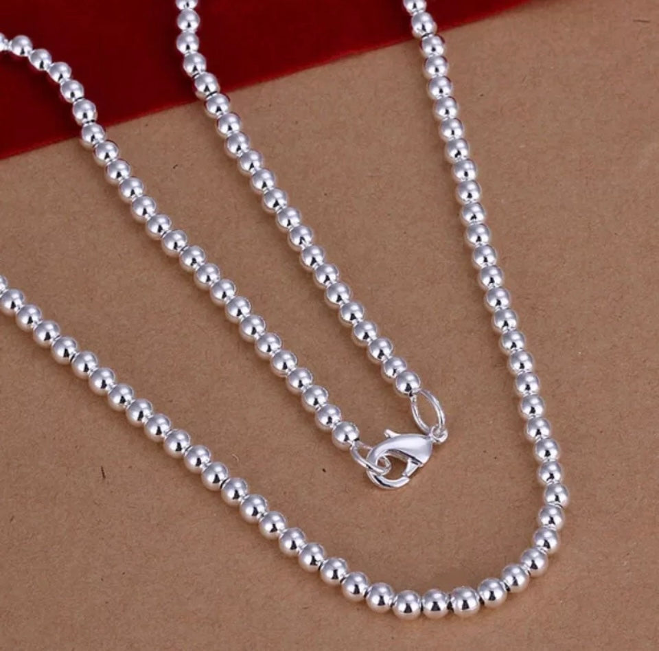 Silver Bead Necklace 4mm Ball 19 Inch Free Gift Bag
