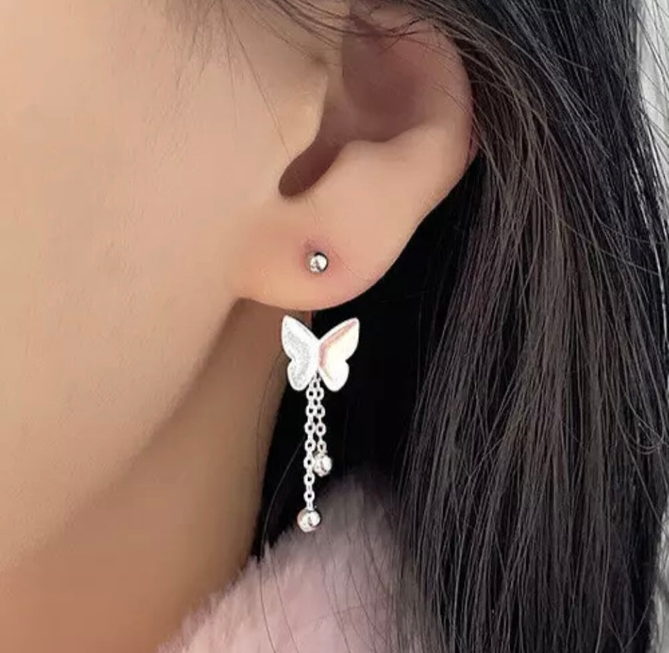 Silver Butterfly Pearls Cute Drop Dangle Stud Hook Earrings