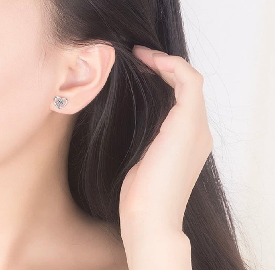 925 Sterling Silver Cute Twist Swirl Knot Love Heart Stud Earrings