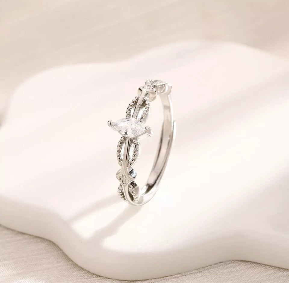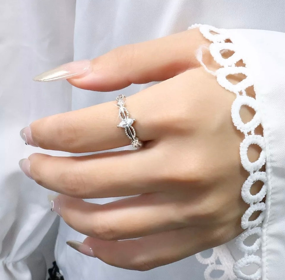 Silver Double Layer Crystals Adjustable Ring