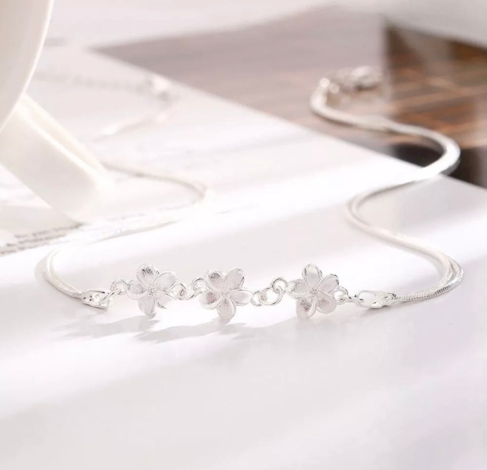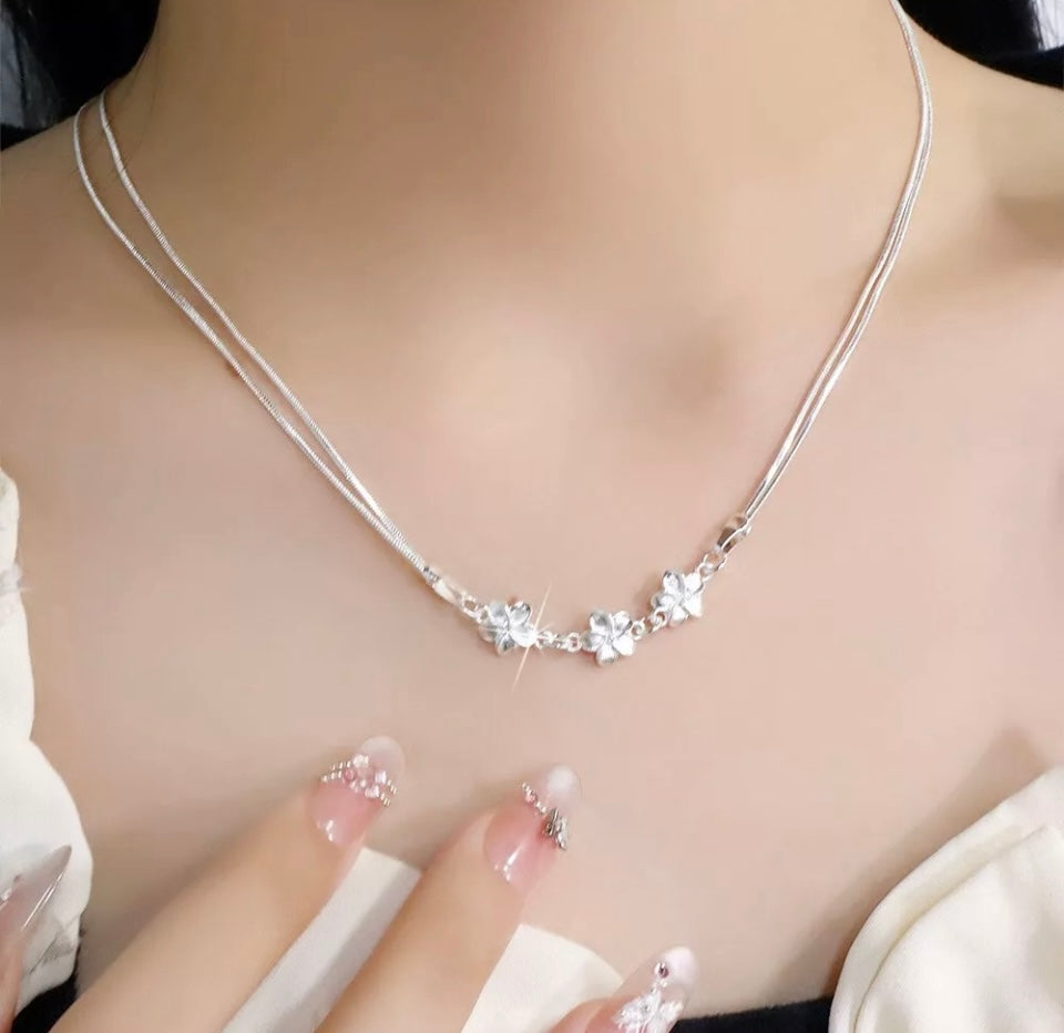 Crystal Flowers Minimalist Cute Necklace Silver Women Girls Gift
