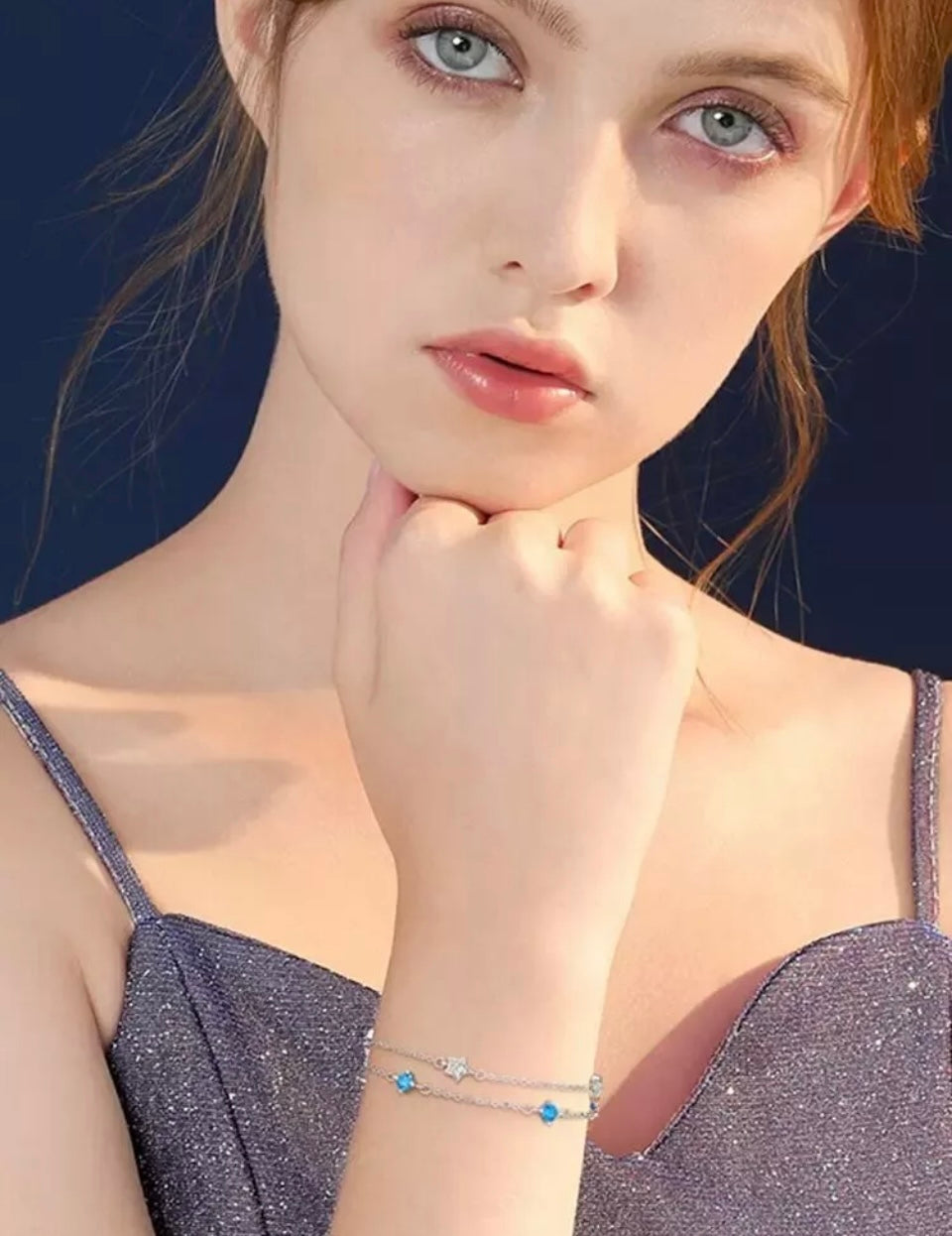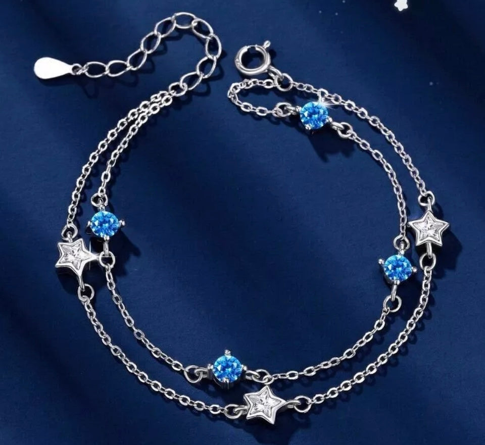 925 Sterling Silver Double Layer Star Linked Charm Bracelet