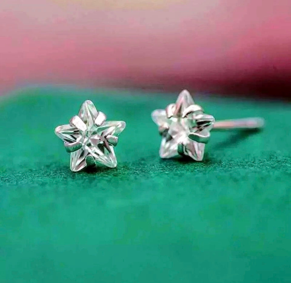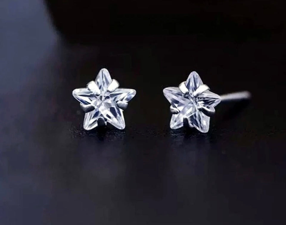 Silver Full Stone Star Stud Earrings