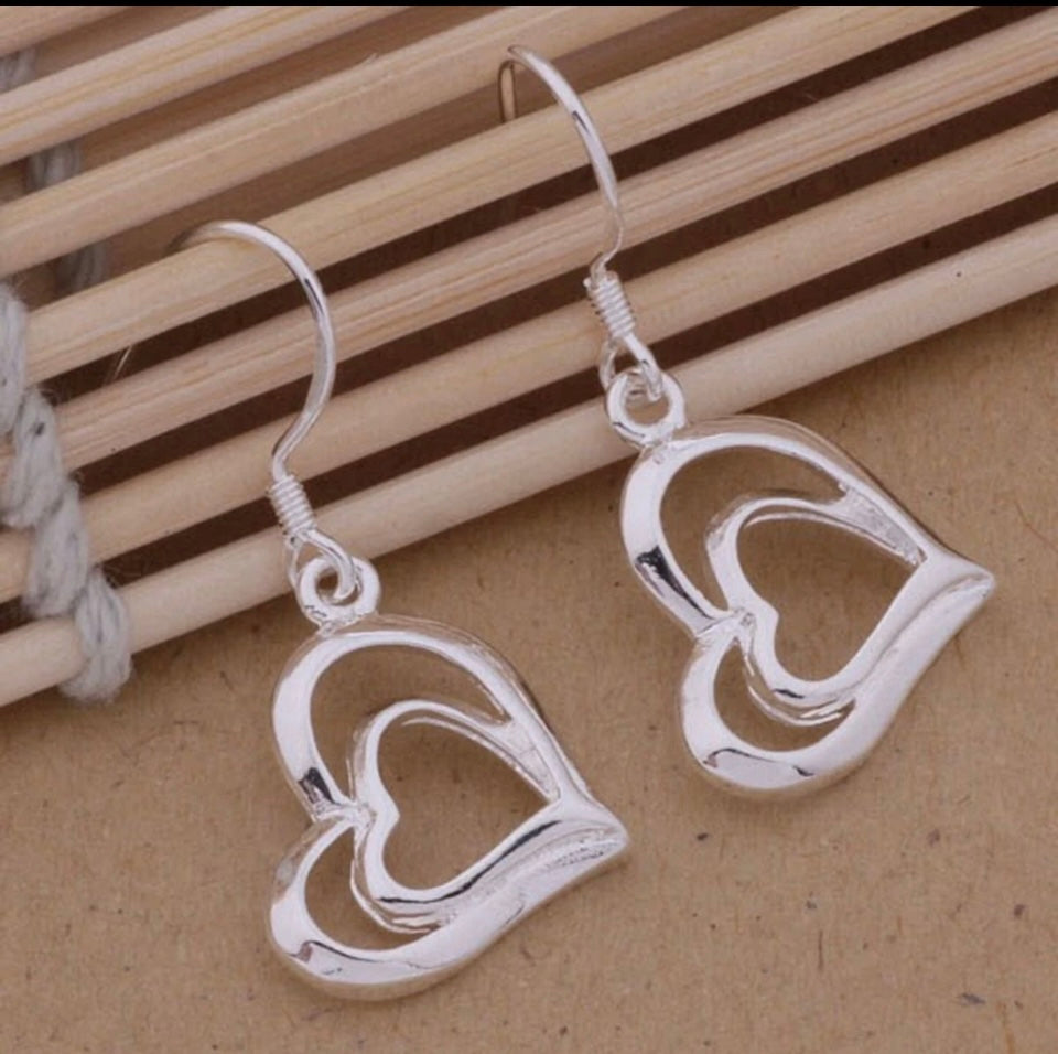 Silver Heart Earrings Drop Dangle Love Romance Free Gift Bag