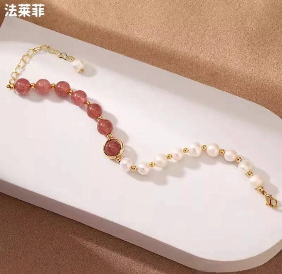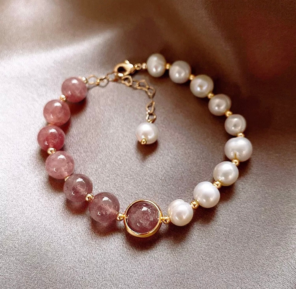 Silver Moonstone Pearls Gold Bracelet