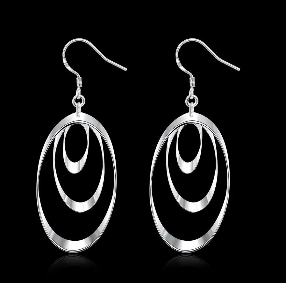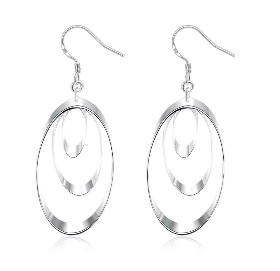 Silver Oval Earrings Shiny Triple Oval Loop Dangle Free Gift Bag