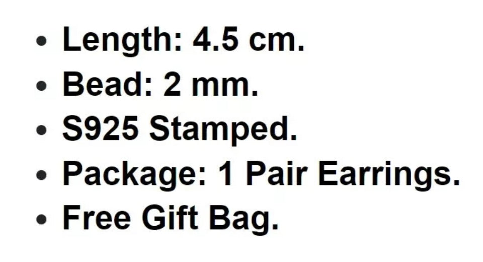 925 Sterling Silver Plain Beads Wire Long Drop Earrings