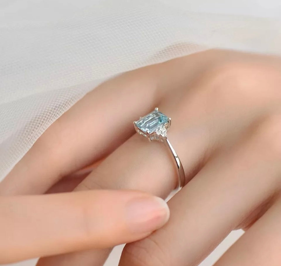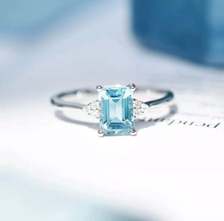 Silver Sky Blue Crystal Adjustable Ring Womens Girls Gifts