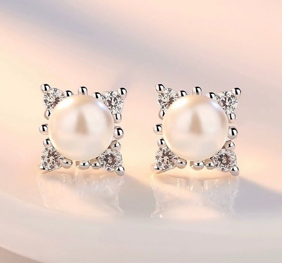 Sterling Silver Square Pearl Stone Stud Earrings