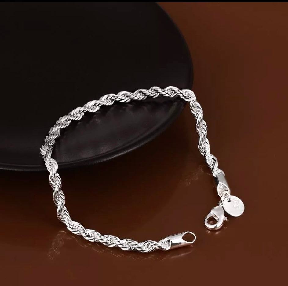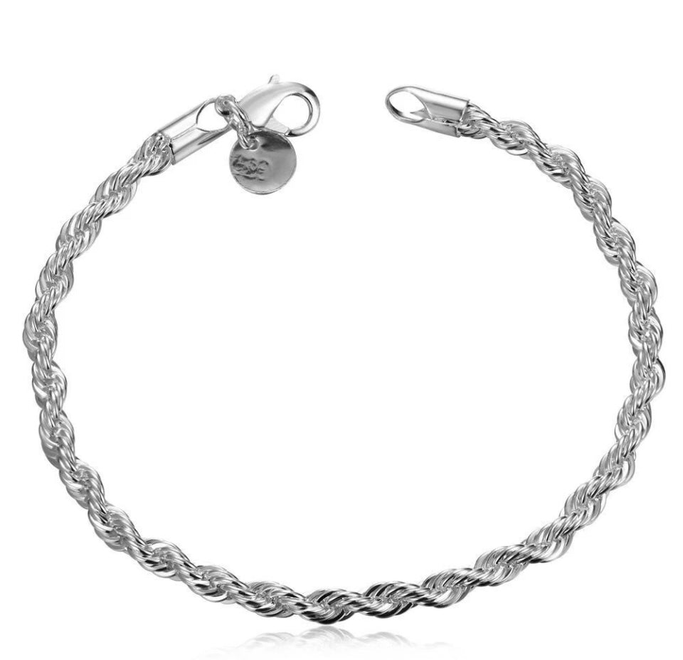 Silver Twisted Rope Bracelet 3mm Chain Link Fancy Free Gift Bag