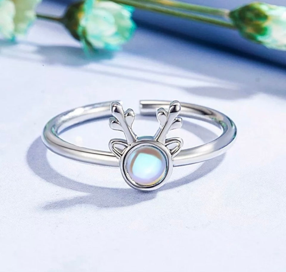 Christmas Elk Silver Adjustable Ring
