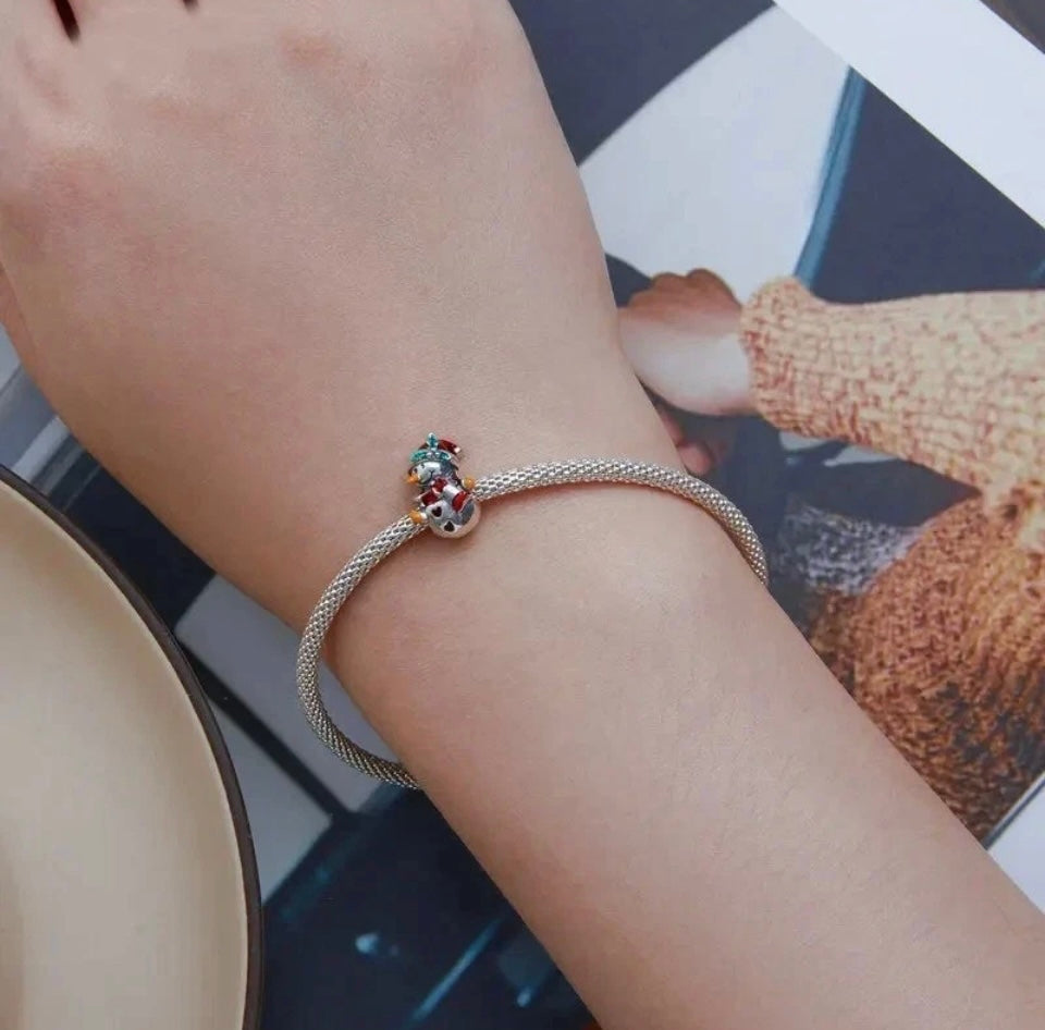 Christmas Snowman Charm 925 Sterling Silver Red Scarf Santa Hat