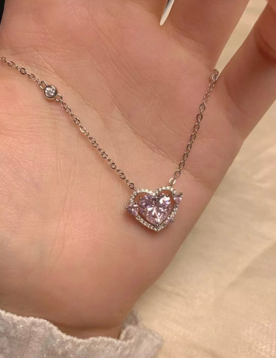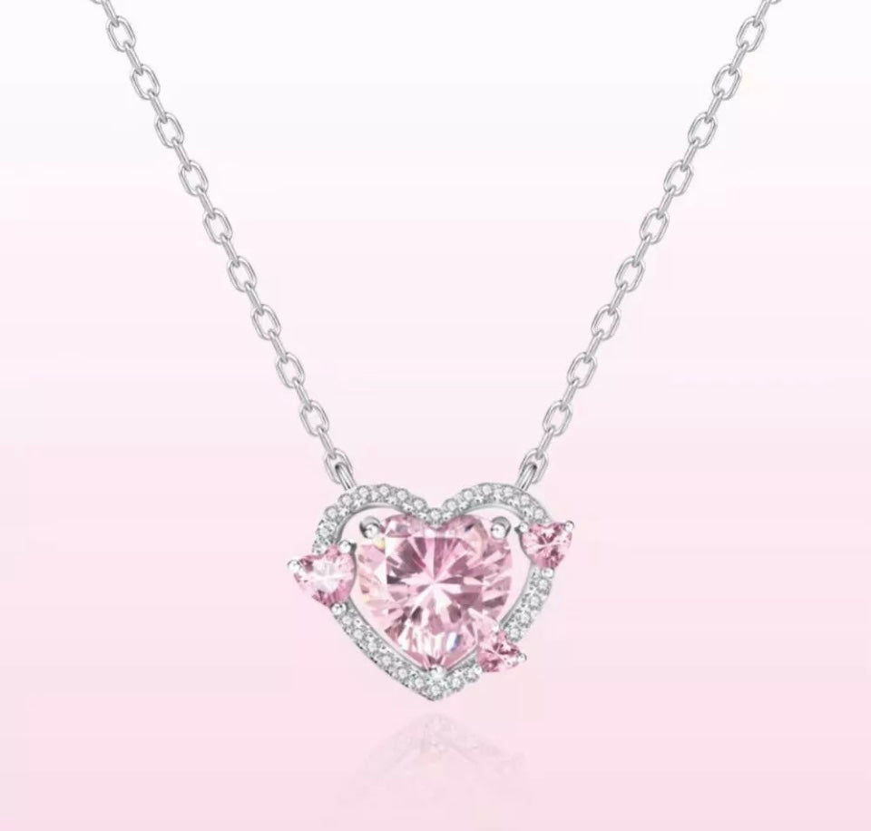 Crystal Hearts Necklace Pendant Silver Women Girls Gift