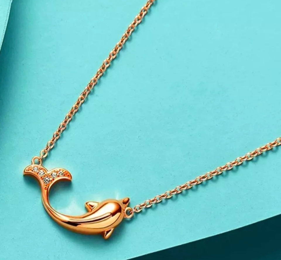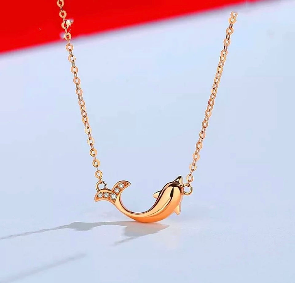 Crystal Rose Gold Dolphin Pendant Silver Necklace