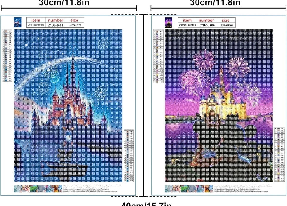 HORPKUN 2 Pack 5D Diamond Painting Kits, Full Drill Diamond Fireworks and Castle