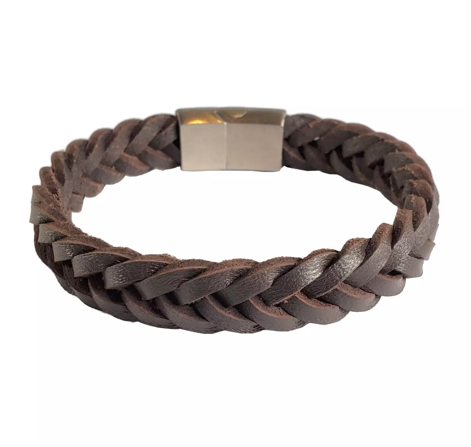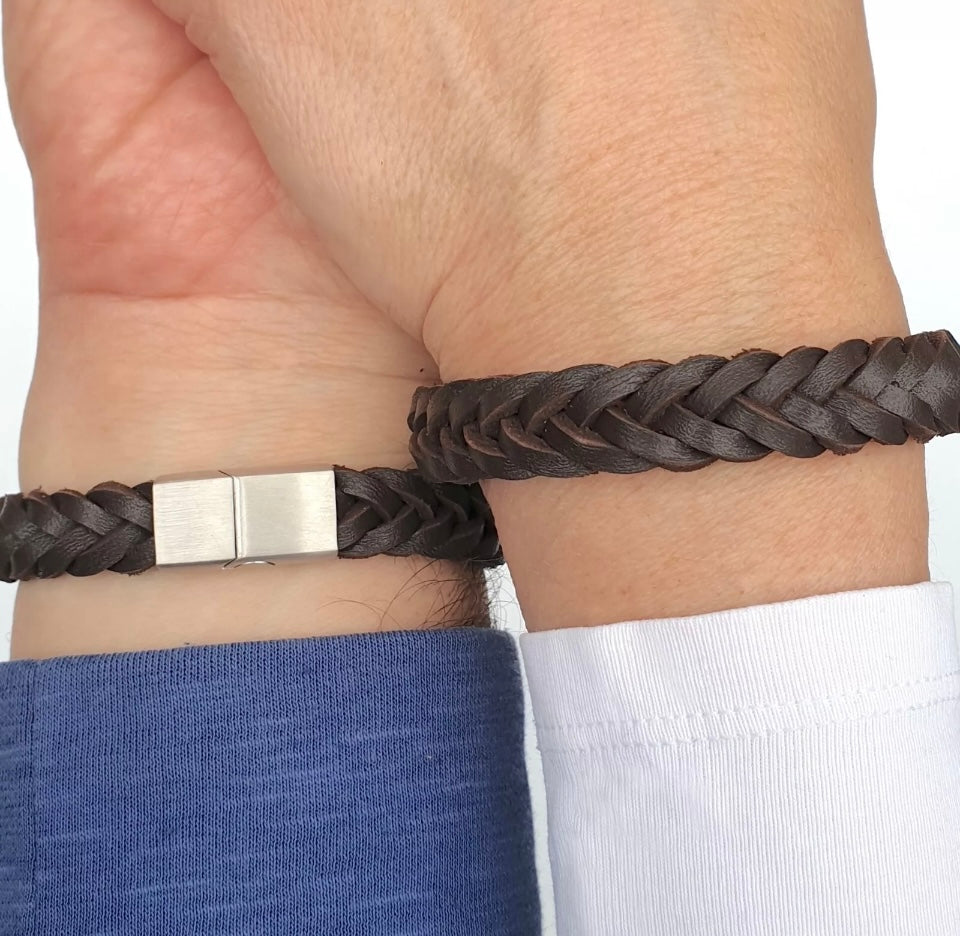 Large Mens Leather Bracelet Braided Surfer Wristband Steel Magnetic Clasp