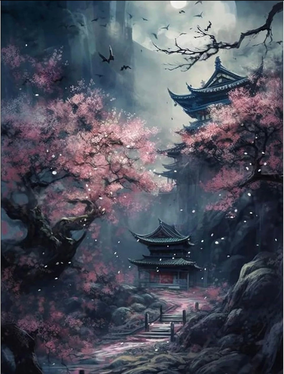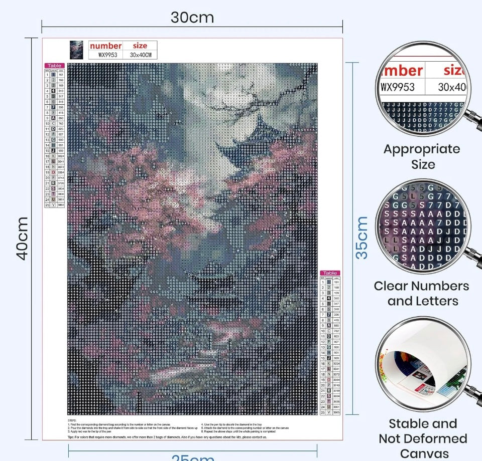 MAXBYE 5D DIY Full Drill Diamond Painting Kits, Cherry Blossoms Diamond Art Kits