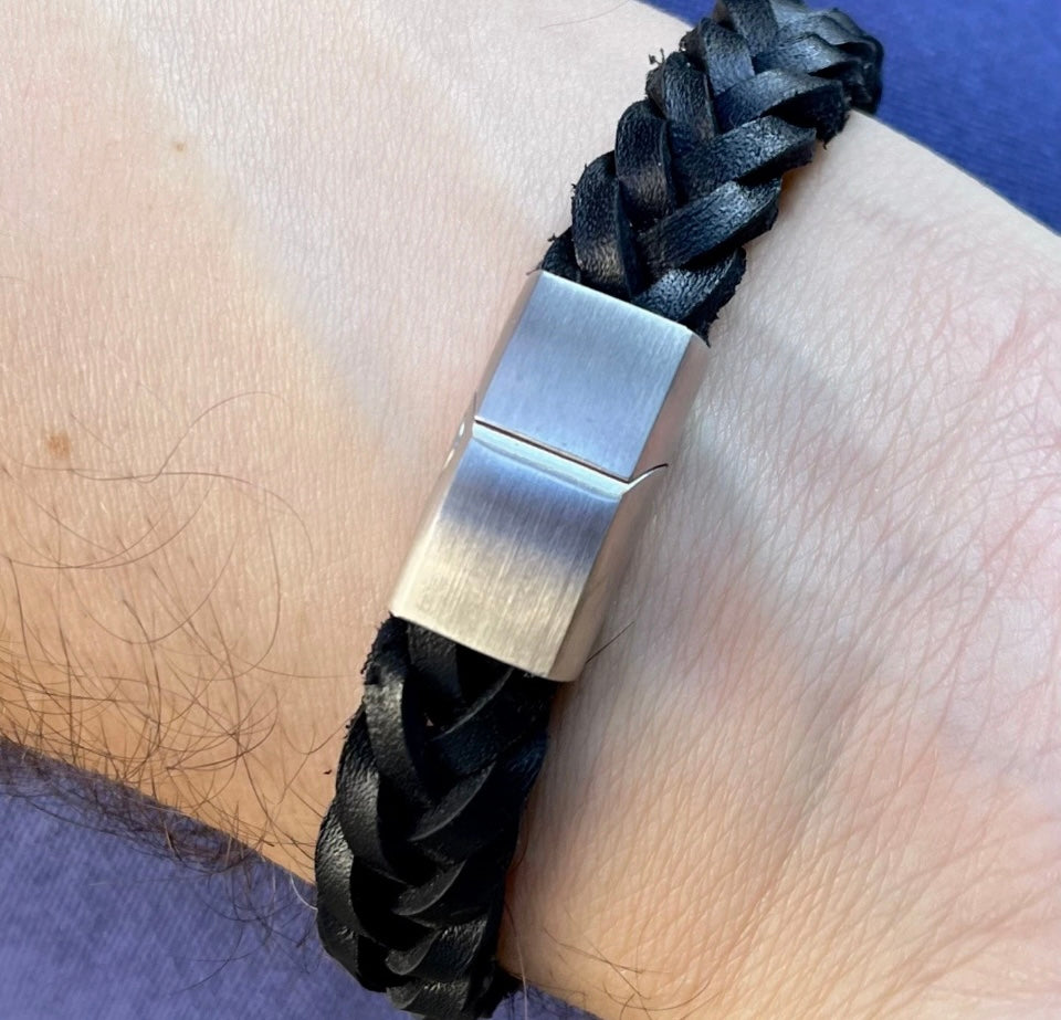Men's Braided Leather Bracelet – Surfer Wristband with Stainless Steel Magnetic 20.5cm