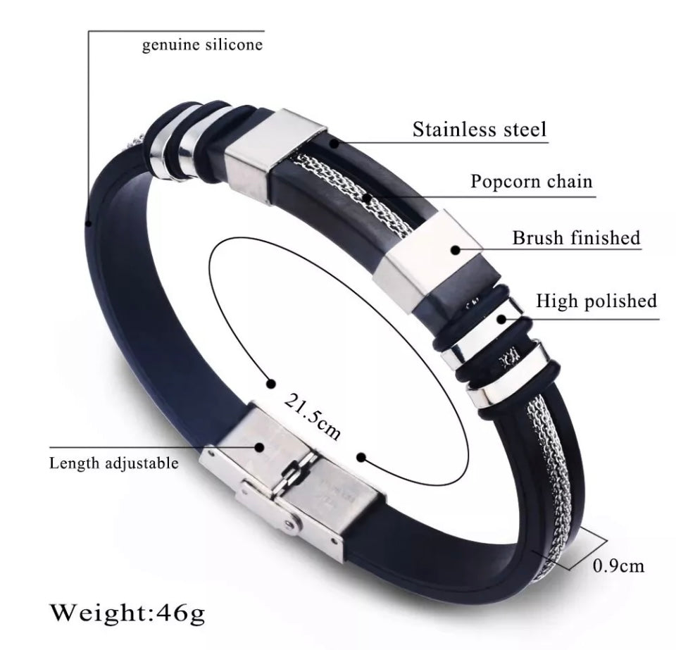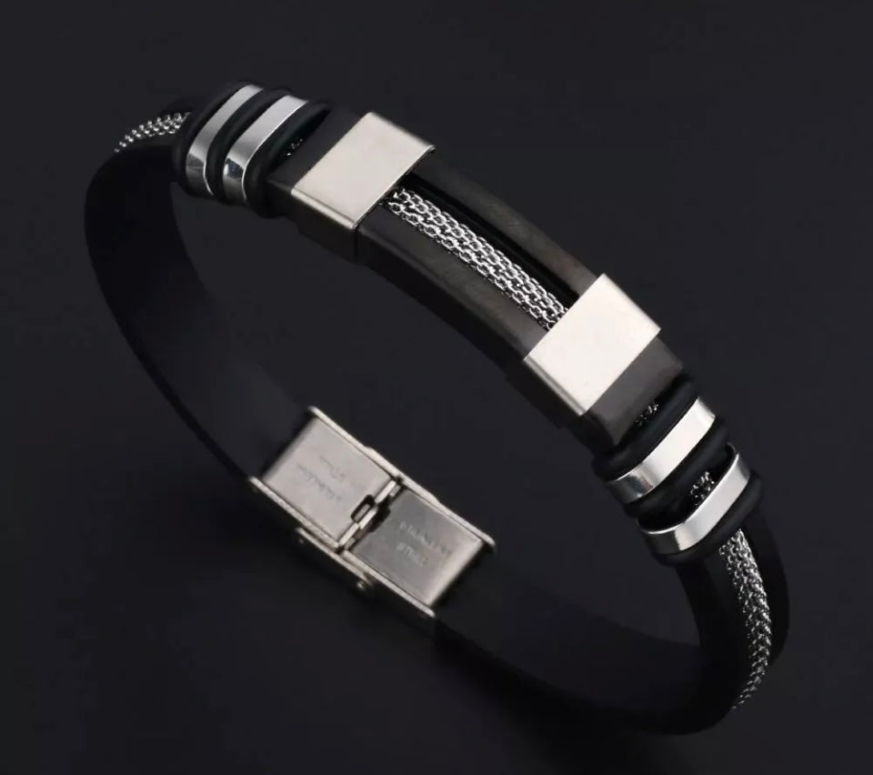 Men's Stainless Steel Bracelet Magnetic Silver Clasp Bangle