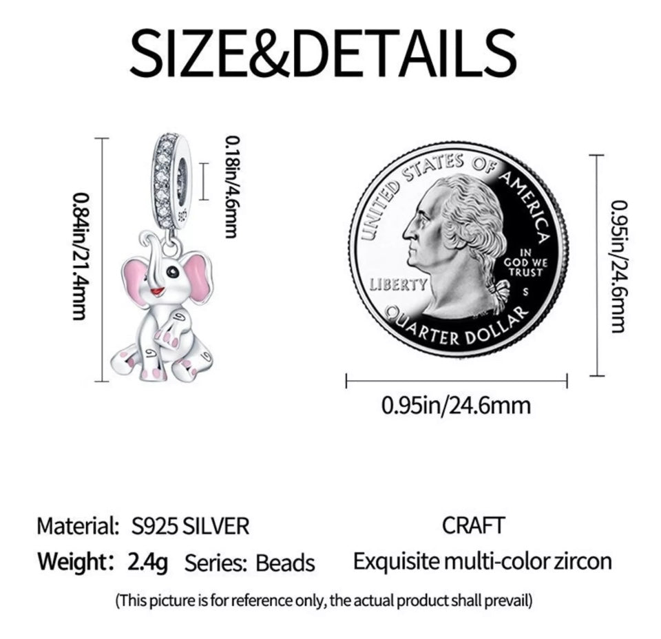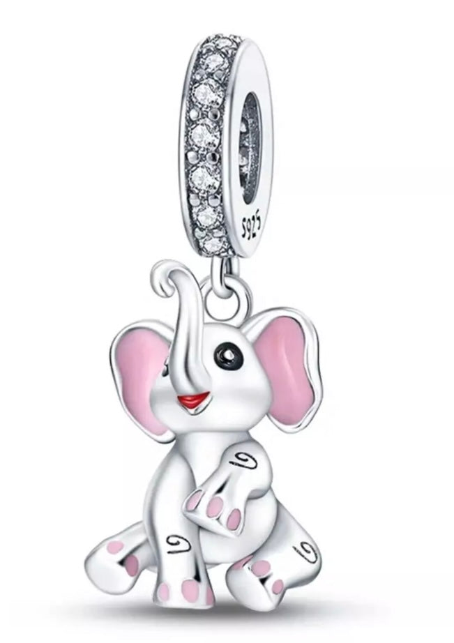 Pink Elephant Dangle Charm For European Bracelets S925 Sterling Silver