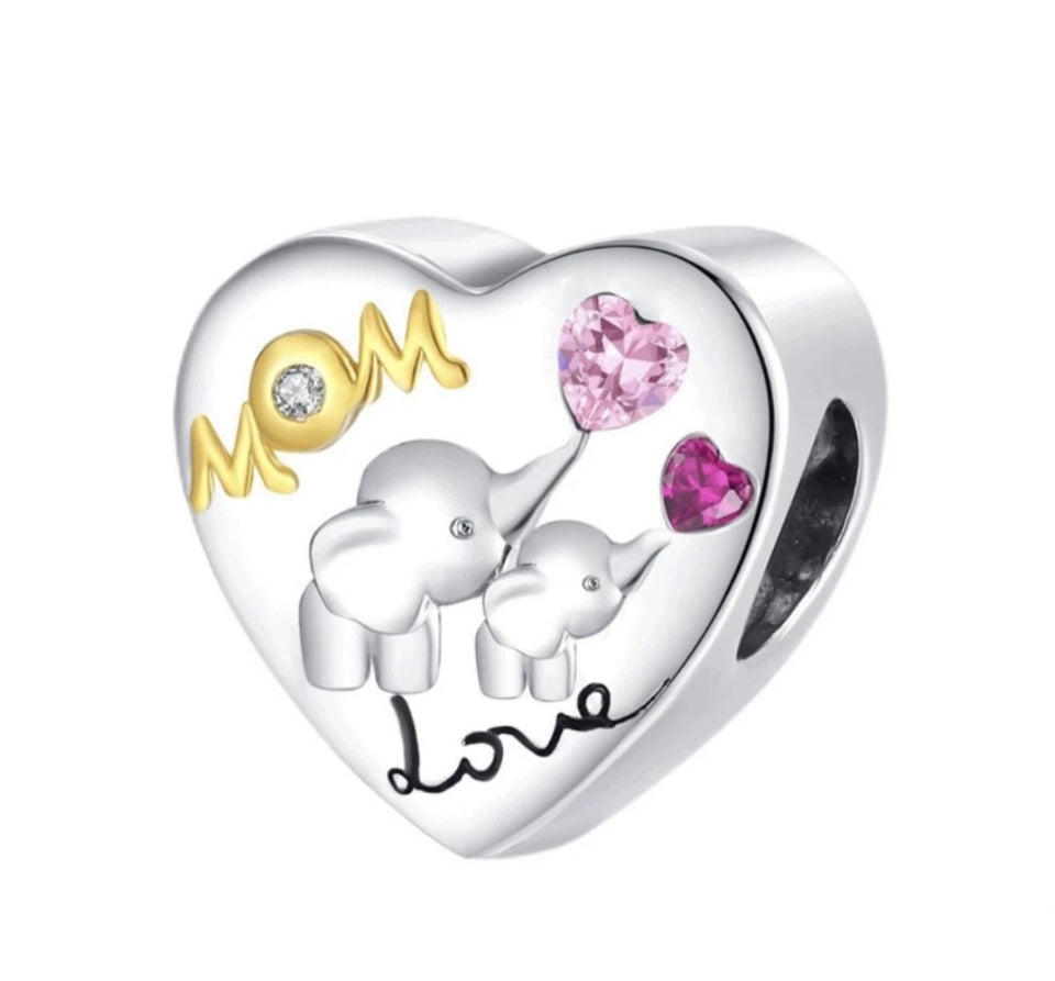 Silver Elephant Mum Sterling Silver S925 Bracelet Charm