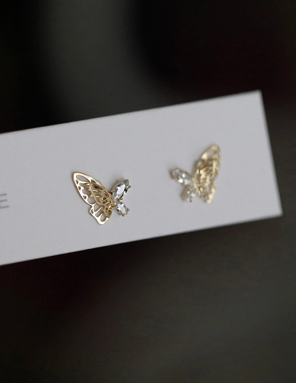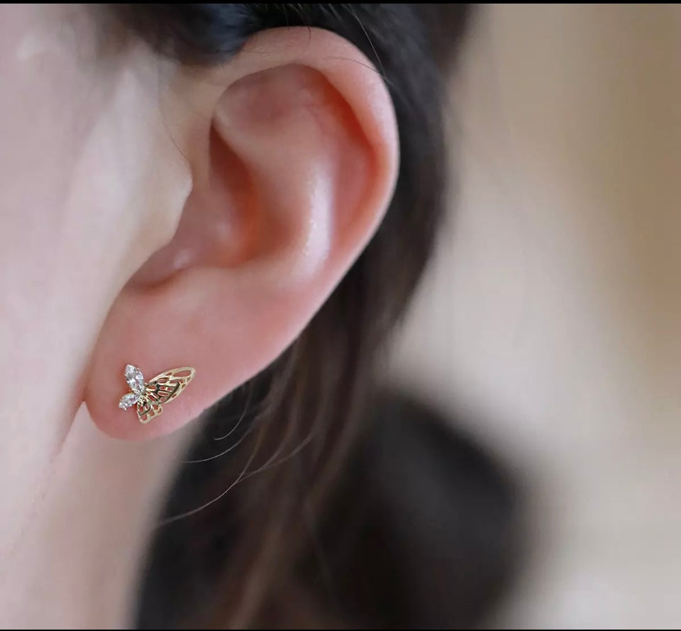 Silver Needle Girls Butterlfly Zircon Gold Earrings