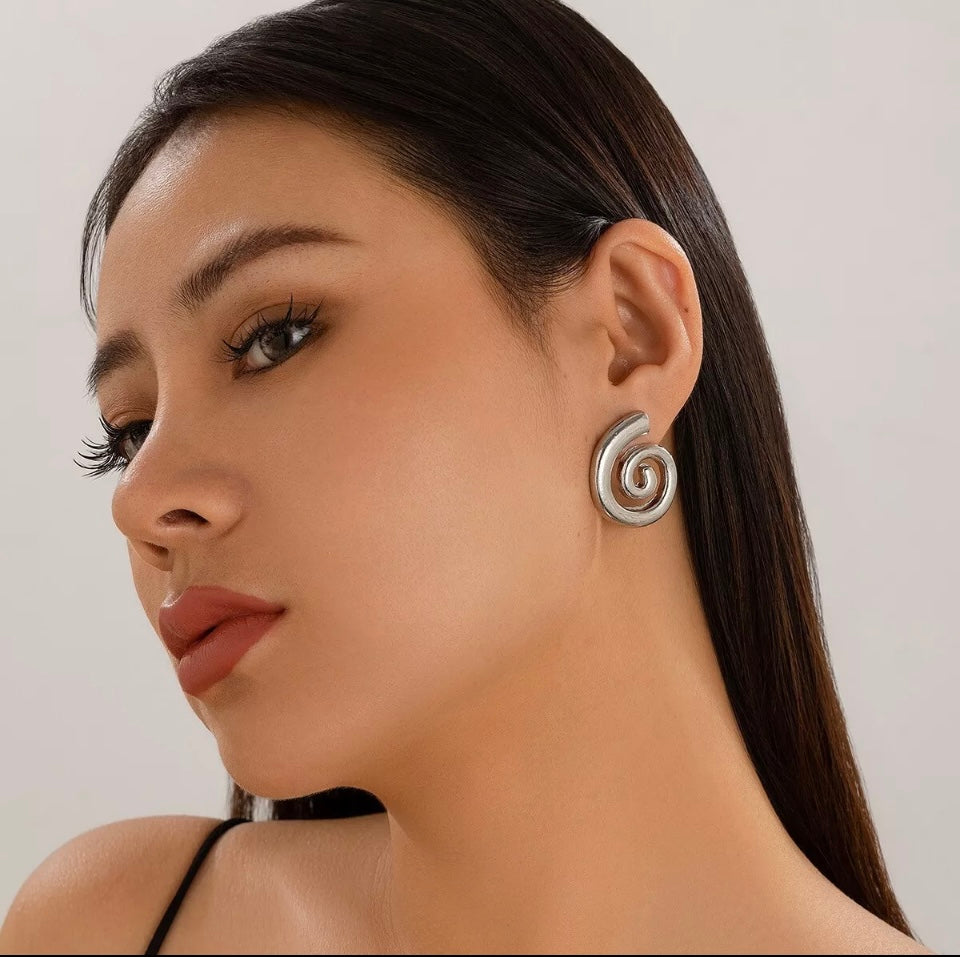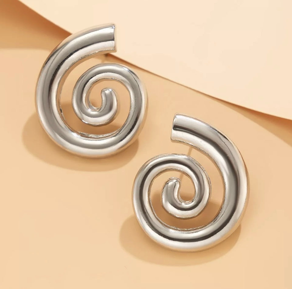 Spiral Stud Earrings Swirl Round Statement Silver Circle