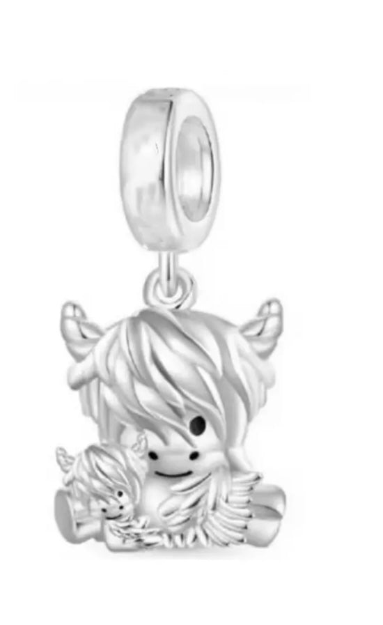 Sterling Silver S925 Highland Cow Charm & Gift Bag