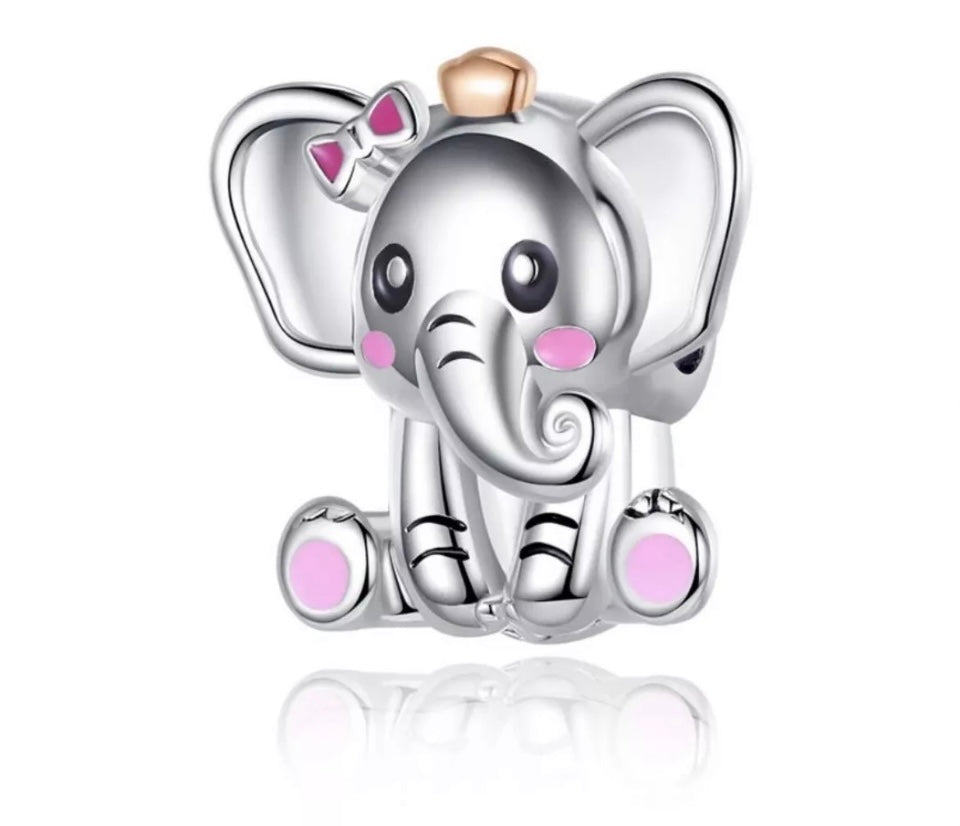 Sterling Silver Sitting Baby Elephant Bracelet Charm, S925