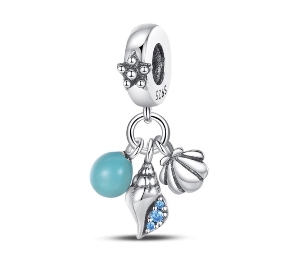 Sterling Silver Triple Beach Shells Bracelet Charm, S925