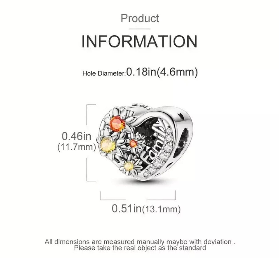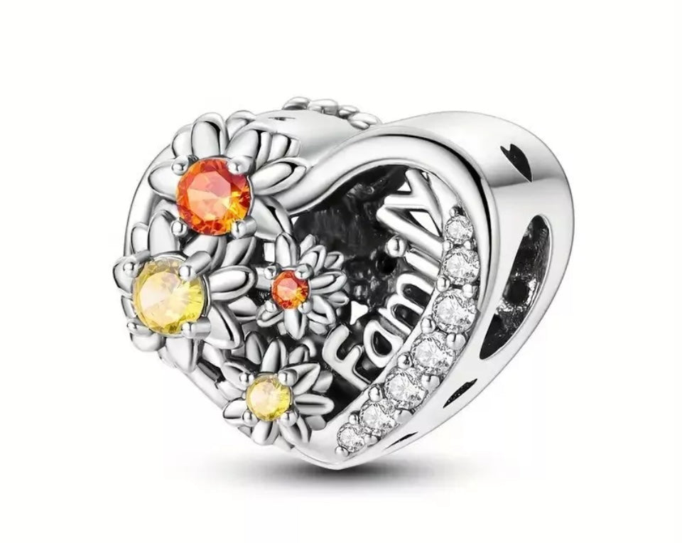 Sunflower Openwork Family Heart Charm For European Bracelet S925 Sterling Silver