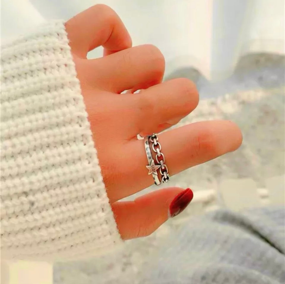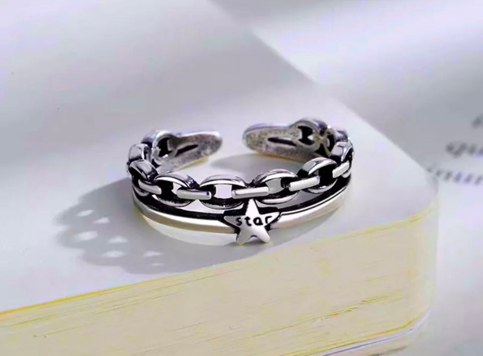 Vintage Star Twist Rope Adjustable Ring Silver