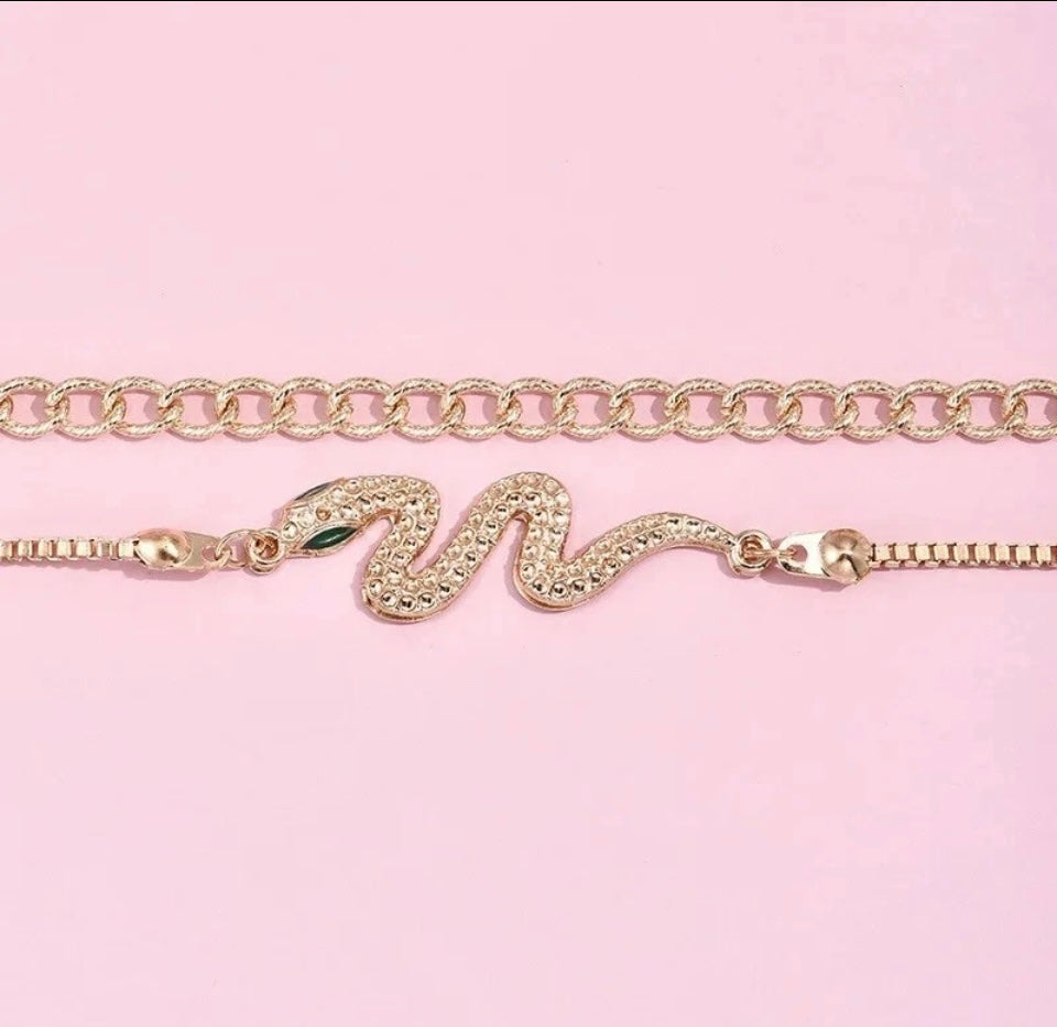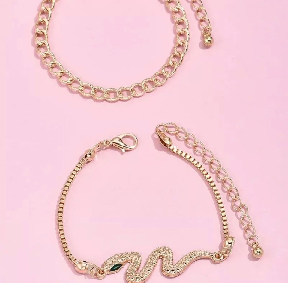 Womens Bracelet Gold Silver Stainless Steel Snake Cuban Link Chain 2pc Gift Set