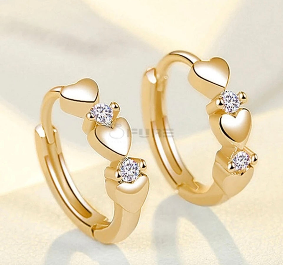 Womens CZ Crystal Heart Hoop Circle Huggie Earrings gold